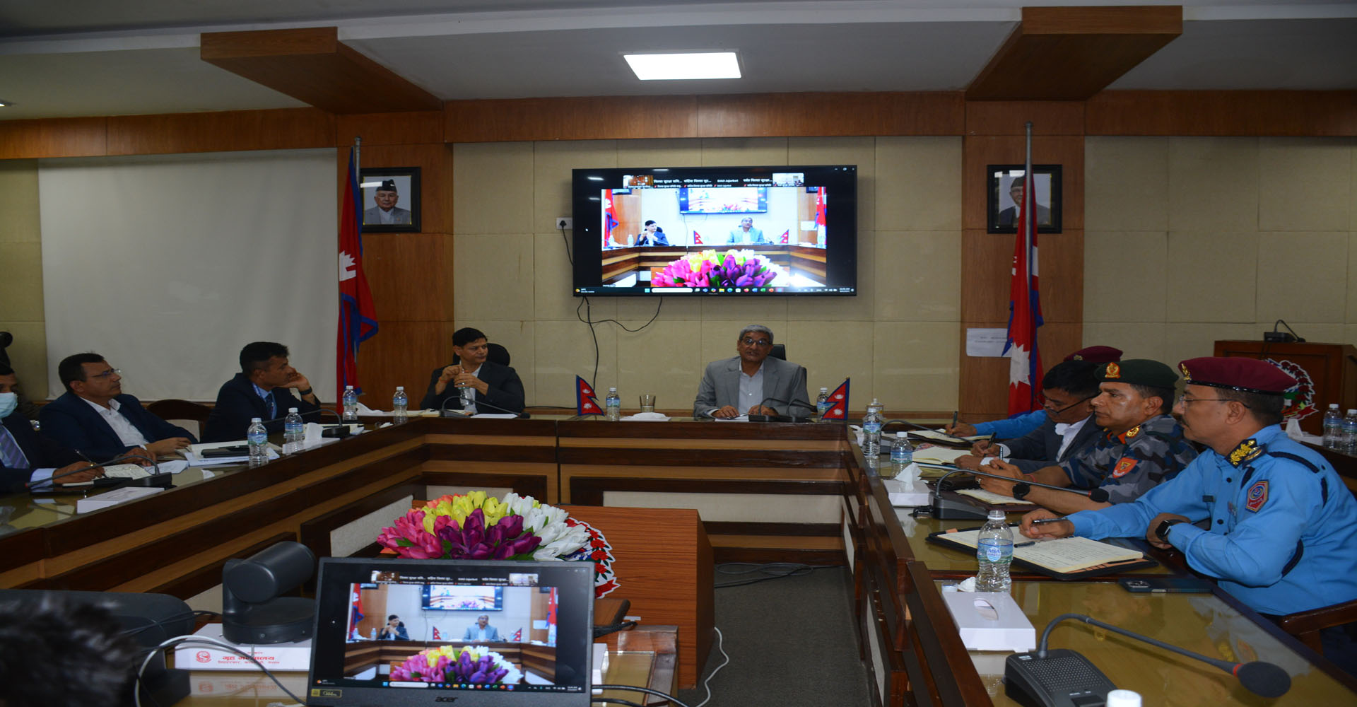 बैठकमा निमित्त गृहसचिव जयनारायण आचार्यले विपद्वद् व्यवस्थापनमा सूचना सङ्कलन र आपसी समन्वय महत्त्वपूर्ण हुने चर्चा गर्दै सुरक्षा निकायसँग समन्वय र सहकार्य गर्दै विपद् व्यवस्थापनमा प्रभावकारी भूमिका निर्वाह गर्नुपर्नेा जोड दिनुभयो ।